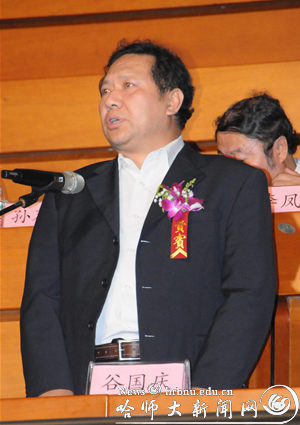 谷国庆在致辞中希望我校青年学生珍惜现在的时光,多学知识,为将来建设祖国、培养新一辈的人才而努力。华影公司也将不遗余力地支持像《大劫难》这样的爱国主义影片,只要哈师大的同学喜欢看,他们就会第一时间将电影带过来给大家放映。
