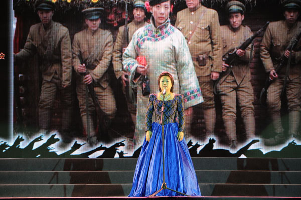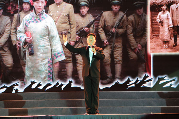 图8 我校学生表演男女声混合唱《保卫黄河》