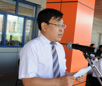 开学典礼上,王选章做重要讲话。他首先代表学校党政领导和全体师生员工,向刚刚迈入大学校门,开始自己崭新学习的2010级新同学表示热烈的欢迎和由衷的祝福。王选章介绍了哈师大的基本情况和优良传统,指出“大学”的真谛在于内涵丰富的大学文化,即追求真理、严谨求实的文化;崇尚学术自由的文化;提倡理论联系实际的文化;崇尚爱国主义的文化。他指出,在刚刚颁布的《国家中长期教育改革和发展规划纲要》中,党和政府把教育放在优先发展教育的战略地位,我校正在向着建设强校的目标阔步前进,学校发展建设的形势大好。