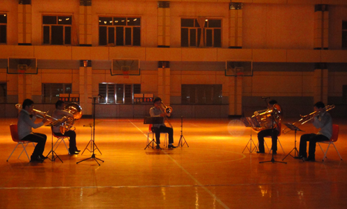 为了让2010级学生更好的感受到大学校园丰富多彩的文化生活,不断提高学生们的审美情操,让学院“10月文明礼仪教育”多角度、多方位的渗透进学生的言行举止中,10月14日、16日,佳木斯大学郎群老师带领“金色映像”管弦乐组合,哈师大音乐学院姜虹老师带领“琵琶•虹”组合来到基础教育学院为学生们带来了两场精彩热情、美轮美奂的高雅音乐表演。
