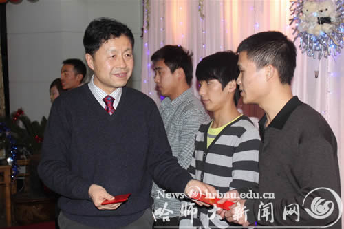 图2 王为正副书记代表学校为学生发放红包
