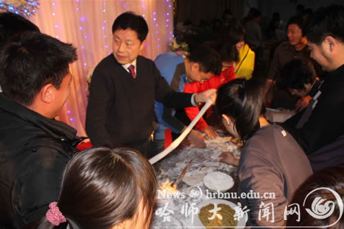 图1 王为正副书记与学生一起包饺子