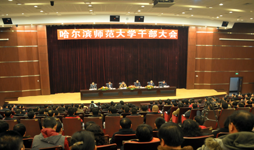 2月21日,我校在松北校区科技会堂召开干部会议。会议的主要内容是省委宣布对我校党委主要领导的任免决定。出席会议的上级领导有省委常委、省委宣传部部长,省委高校工委书记、省教育厅厅长张永州以及省委组织部副部长秦恩亭等领导同志。学校党政领导、全校副处级以上干部、博士生导师、省级重点学科带头人、省级以上专家、各民主党派负责人、系主任参加了会议。会议由学校党委副书记、校长王选章主持。