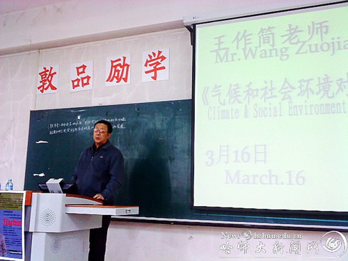 3月9日,管理学院特邀哈尔滨仁皇药业总经理张志成先生为全体师生做了题为“大学生的春天来了”的主题讲座。3月16日,学院邀请有“哈尔滨城市通”称号的出租车司机王作简先生为学生做“哈尔滨历史文化解读”主题讲座。
