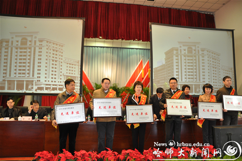 会议对在2010年度经济工作中做出突出贡献的企业、部门和个人给予表彰和奖励。我校被南岗区委、区政府授予“2010年度大项目建设先进单位”光荣称号。黑龙江现代文化艺术产业园区建设指挥部常务副总指挥、总务长马明参加会议并代表学校接受颁奖。
