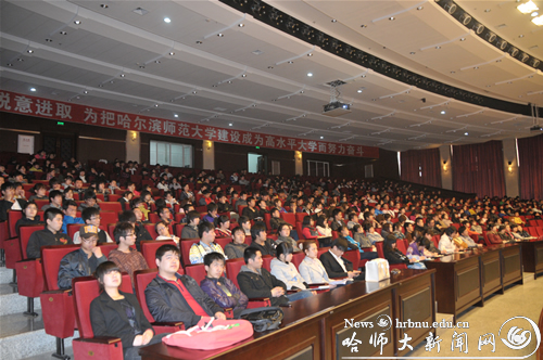 为丰富大学生思想政治教育途径,积极引导学生认清当前国际形势,树立正确的人生观、世界观,学生工作处联合党委宣传部于3月30日下午在科技会堂共同举办形势政策报告会。报告会由党委宣传部部长徐德荣教授主讲,学生工作处副处长宋佳东主持报告会,江北校区各学院主要学生干部及学生党员500余人听取了报告。