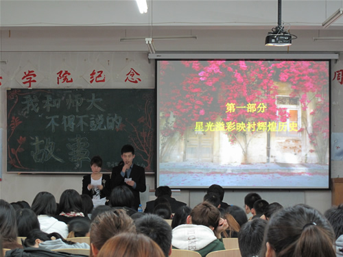 庆生六十甲子,回眸建校风云。3月31日下午,管理学院在政法楼502室举办了以“我与师大不得不说的故事”为主题的大型团活。校团工委书记、副书记、各学院团工委书记及管理学院09级全体同学参加了本次活动。