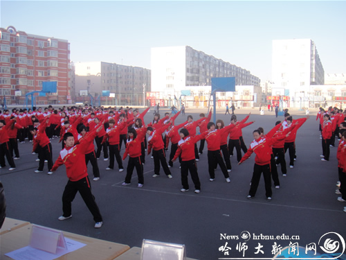 4月8日晨,基础教育学院在排球场举行了一场以 “活力青春、健康运动、和谐校园”为主题的广播操观摩赛,旨在示范和推广校园广播操。学院学生办老师、学生会主席和各部负责人、各年级负责人、各专业学生代表观看了此次比赛。