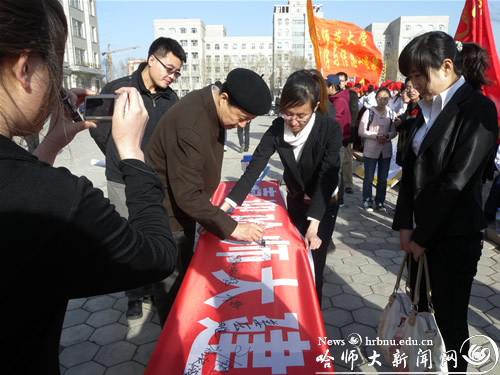 图1 党委副书记王为正在条幅上签名
