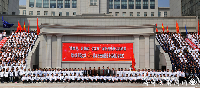 在中国共产党建党90周年全国上下进行创先争优活动之际,我校将迎来建校60周年华诞。4月19日中午,我校隆重举行了“作表率、比贡献、促发展”深化创先争优活动暨拼搏在线登录60周年校庆志愿服务活动启动仪式。校党委副书记王广明,党委常委、组织部长尹占军出席了本次活动。仪式由学生工作处处长刘峰主持。