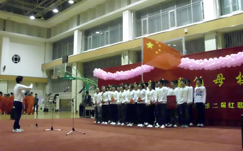 本次红歌会决赛在学院民传专业学生的精彩武术表演下拉开帷幕,随后一首首经典红歌被学生们演绎得精彩纷呈,班班都唱出了自己的独特风格。比赛中间穿插2009级同学霍彦波的英文朗诵迎来了台下热烈的掌声,随着2009级体教八班的一首《精忠报国》将现场气氛推向高潮。