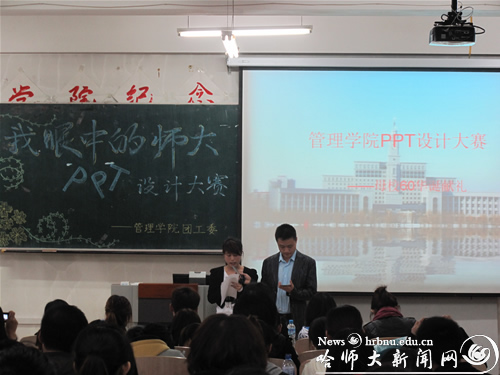 为迎接学校建校六十年华诞,响应学校团委的号召,管理学院于4月20日在政法楼502室举办了一次名为“我眼中的师大”PPT展示大赛。本次比赛共有十五组选手参赛,管理学院09级学生参观了比赛。