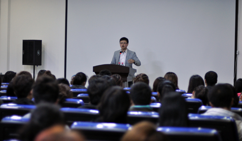 4月27日,在田家炳传媒学院300多媒体教室,我校优秀毕业生,黑龙江电视台法制频道主持人李宏天回传媒学院为本院学生做了一场十分精彩的讲座。传媒学院的相关领导、专业教师及学生参加了此次讲座。