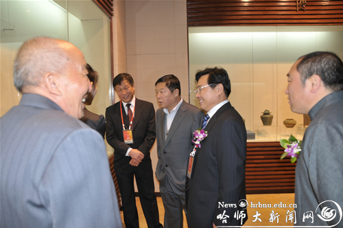 校党委书记在致辞中,向出席仪式的各位领导和嘉宾表示热烈欢迎,向在展馆建设过程中给予关心与大力支持的社会各界,特别是中国水产科学研究院黑龙江水产研究所、南瓮河国家级自然保护区、兴隆林业局、省博物馆、牡丹江师范学院,以及我校社会与历史学院、生命科学与技术学院、美术学院、传媒学院、西语学院、体育科学学院、音乐学院、图书馆、附属中学等单位表示由衷感谢,向为展馆建设做出突出贡献的张少杰教授、卢禹舜教授、高卉民教授、栾继生教授、刘晓光教授,以及王俊先生等社会名流和贤达人士致以崇高敬意,向为展馆建设付出辛勤劳动的同志们致以诚挚问候。