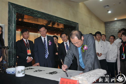 开馆仪式结束后,各位领导、嘉宾和师生共同参观了五座展馆。当代著名书画家卢禹舜现场为展览中心题词“盛世辉煌”,以表庆贺。