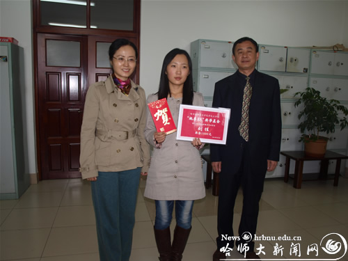 “桃李88”奖学金是88级全体毕业生为回报母系的培养和教育而创立的,名字寓意着化学系88级全体毕业生奉献爱心润泽桃李之意。奖学金每年颁授两次,每次金额为1000元,奖励对象为化学化工学院化学教育专业每学期成绩排名第一的一年级学生,旨在对在校大学生的学习起到鼓励与促进作用。2010级化学教育专业刘佳同学成为了此奖学基金创立后的第一位获此殊荣的同学。王晓光和曲凤玉分别为刘佳颁发了获奖证书和奖金。刘佳在发言中感谢学校、学院以及88级校友,表示将会把这份感激之情化为动力投入到今后的学习中去,不断提高,不断进步。
