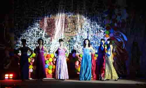夜幕下,动感的音乐声中一段精彩旋动的集体舞掀起了场上的气氛,随后,闭幕式晚会在主持人精彩的开场白之后正式拉开帷幕。这是一场以“青春 创新 独特”为主题,以环保为理念,同时注入了时尚元素的环保时装秀表演大赛。伴随着动感十足的快曲和舒缓悠扬的慢曲,各参赛队伍精心编排表演队型、设计动作和台步,让现场观众充分感受到了现代女大学生的时尚美丽和新一代大学生自信、青春、热情、活力的青春风采。她们身着各式服装,无论是高贵典雅的华服或是成熟干练的职业装,亦或是活力动感的休闲装,都吸引着评委和观众的目光,给大家带来了一场视觉盛宴。有的参赛队伍还匠心独运邀请了男同学同台参演,为大赛增添了一道靓丽的风景。