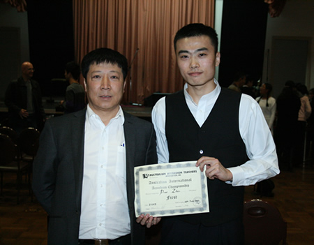图1 青年演奏家组第一名获得者朴震同指导教师王宏宇教授合影