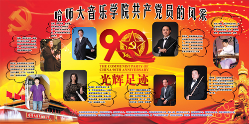 在庆祝建党90周年之际,音乐学院将刚刚获得“第三届全国中青年德艺双馨文艺工作者”殊荣的陶亚兵和学校党委表彰的优秀党务工作者陈万才、孙鹏,优秀党员李学彬、马卫星、张彤、吕利、钱正龙,先进党支部音乐学教师党支部、管弦系学生党支部的事迹制成宣传展板,引来众多师生的关注。师生们反映受表彰的老师和支部成员严谨认真,业绩突出,令人敬佩,他们在平凡的岗位上,以饱满的工作热情、扎实的工作作风,彰显出共产党员的风采。