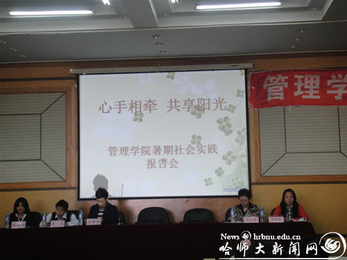 9月21日下午,管理学院在校图书馆三楼报告厅举行了“心手相牵,共享阳光”暑期社会实践报告会。学院党委书记张立君、学工办主任兼团委书记李新野出席了此次活动。会议由团工委副书记韩伟主持。