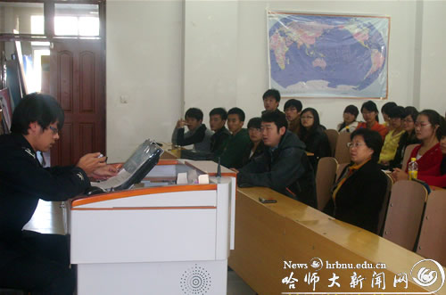 10月12日,地理科学学院在理工三号楼122室举办了防火安全知识讲座。保卫处防火管理科副科长谢春雨应邀作了报告,地理科学学院党委书记张雪萍、党委副书记张立辉出席讲座,讲座由副处级辅导员、学工办主任李志宇主持,2010级全体学生听取了讲座。