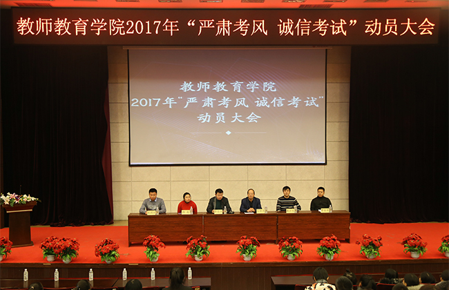 (李志宇/文)为了提高大学生诚信意识,加强学风建设,严肃考风考纪,教师教育学院于12月12日在科学会堂举办诚信考试动员大会。学院党委书记左继亮、副处级辅导员吕会庆出席了本次活动。诚信考试动员大会由学院党委副书记李志宇主持。