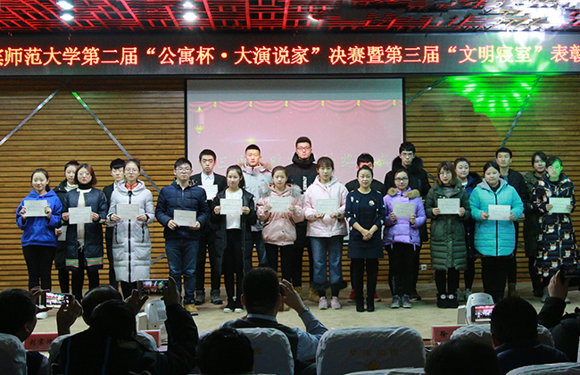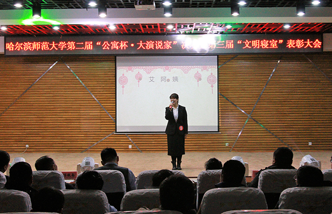 为深入学习党的十九大精神,贯彻落实《拼搏在线登录大学生思想政治教育“112349”工作模式实施方案》文件精神,充分展现我校学生的爱国情怀与积极向上的精神风貌,促进学生全面发展,构建温馨和谐的寝室生活环境,12月14日,学生工作部在梦溪宾馆二楼举办了第二届“公寓杯•大演说家”演讲比赛决赛暨第三届“文明寝室”表彰大会。活动邀请学生工作部部长姜玉洪、副部长李鹏作、徐琳、体育科学学院党委副书记冯铁南、地理科学学院党委副书记、管理学院党委副书记刘宗波担任评委;学生宿舍管理中心、各学院负责舍务工作的老师、各学院舍委会主任、第三届“文明寝室”寝室成员代表参加了本次活动。