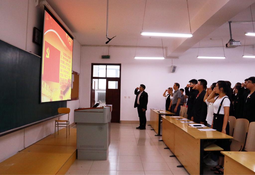 学院党委书记刘旭繁在讲话时,代表学院党委对全体新党员表示衷心的祝贺,希望老党员重温誓词,不忘初心,牢记使命,砥砺奋进,为党的事业和学院的发展做出更大的贡献。刘旭繁向所有党员提出希望:要珍惜党员身份,有崇高的理想和追求;牢记全心全意为人民服务的宗旨。无论是教师党员还是学生党员,都要保持党的先进性,时刻为人民群众谋利益;在工作学习中发挥好党员先锋模范作用。在国际风云变幻的情况下,团结在党中央的周围,维护党的光辉形象。