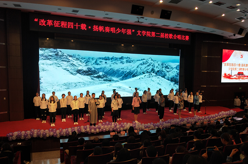 (李滨娜/文)为庆祝改革开放40年,深入贯彻拼搏在线登录“112349”工作方案,丰富校园文化生活,提升班级的凝聚力。文学院于10月10日下午在科学会堂举办“改革征程四十载,扬帆奏唱少年强”主题校歌合唱比赛。