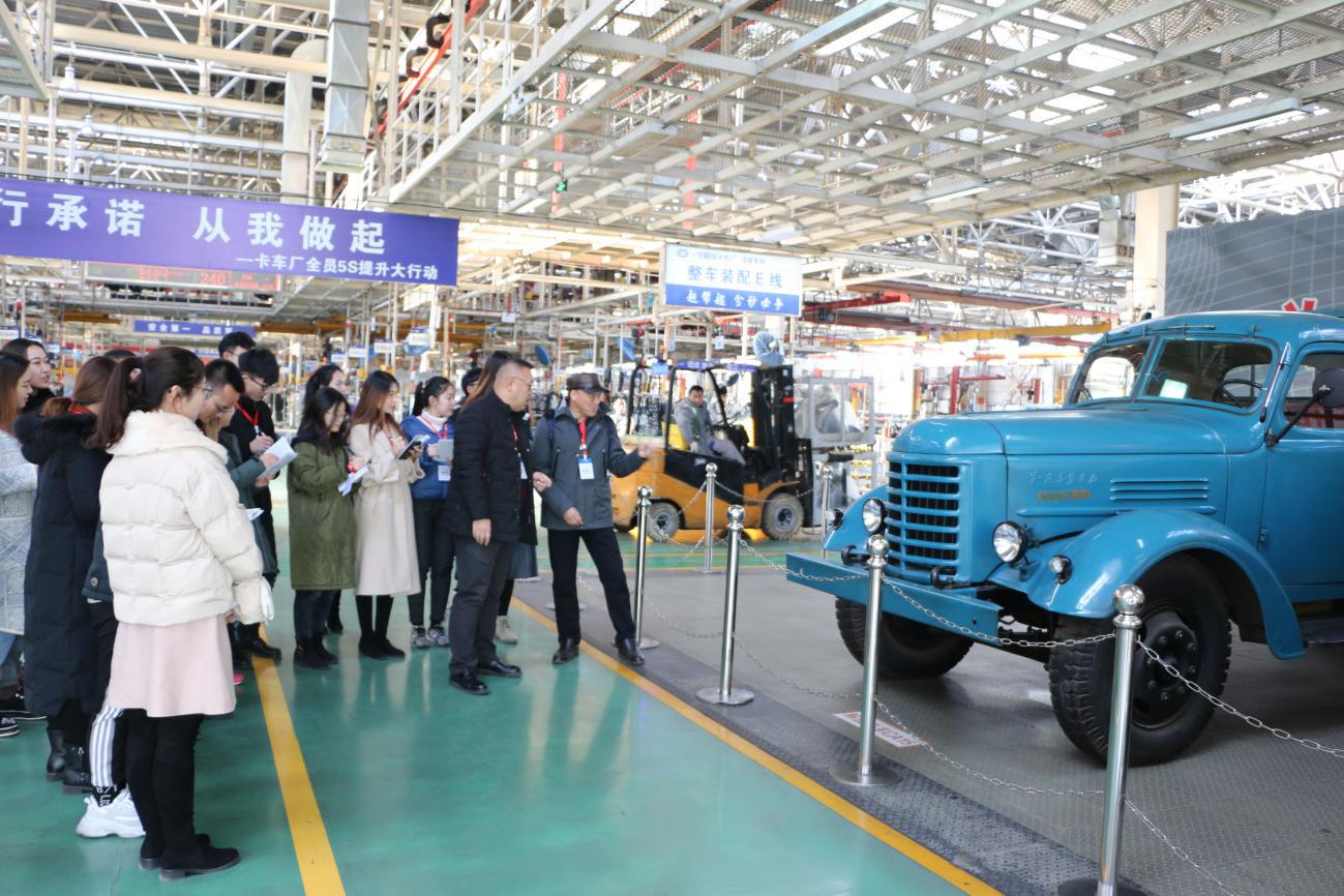 图 实践团参观第一代一汽解放汽车