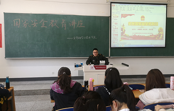 为贯彻落实习近平总书记提出的‘总体国家安全观’提高学生维护国家安全的法律意识,增强国家安全法的普法宣传,生命科学与技术学院于4月12日上午在崇师楼举办“树立总体国家安全观,增强国家安全责任意识”为主题的国家安全知识讲座。讲座由学校武装部宋庆春老师主讲,党委党委副书记高阳、2018级部分学生及老师参加讲座。