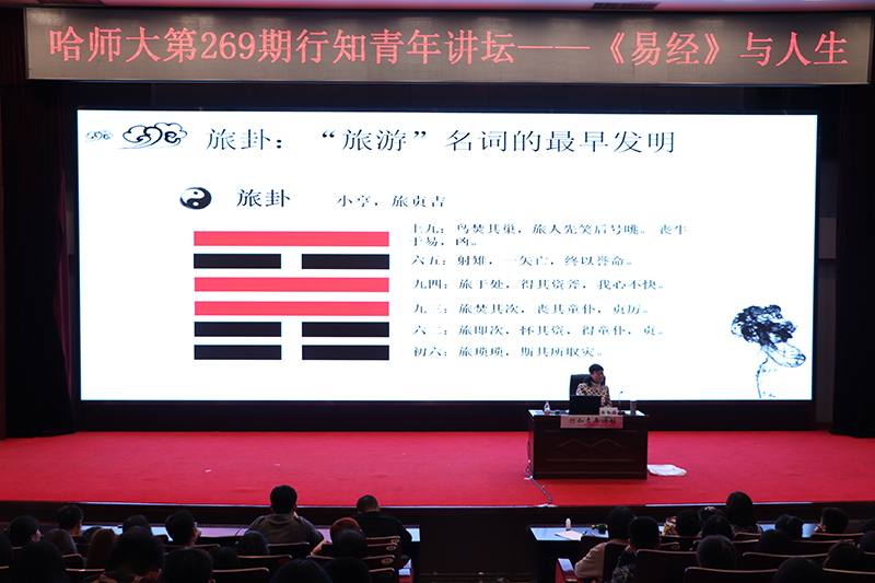 (刘强/文)4月23日晚,地理科学学院教授、硕士生导师徐淑梅应邀做客我校第269期行知青年讲坛,讲座主题为“《易经》与人生”。科学会堂二楼座无虚席。
