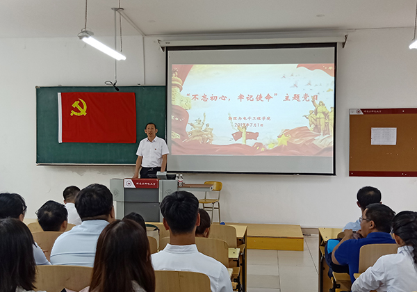 (孔德静/文)为庆祝中国共产党建党98周年,号召党员坚定理想信念、增强党性修养、发挥党员先锋模范作用,7月1日中午,物理与电子工程学院党委在理工二号楼211教室举办“不忘初心,牢记使命”主题党日活动。学院党委书记刘旭繁、院长高红、副院长孙文军以及全体师生党员参加了活动,活动由学院党委副书记姜雪娥主持。