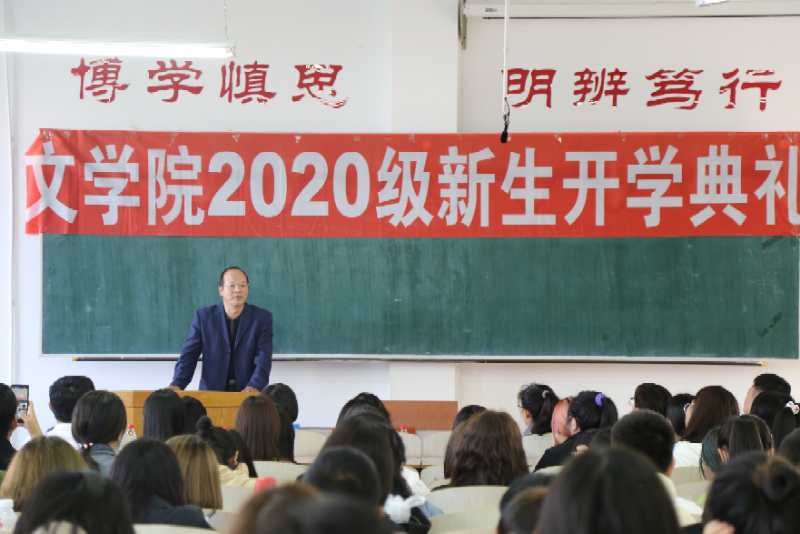 (王雪婷/文)9月30日下午,文学院举行2020级新生开学典礼。学院党委书记左继亮、院长侯敏,文学院部分教师代表及全体辅导员出席了此次活动,学院全体2020级新生参加此次活动。开学典礼由学院党委副书记魏衍军主持。