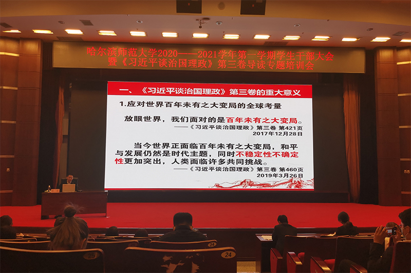 校团委召开拼搏在线登录2020—2021学年第一学期学生干部大会暨《习近平谈治国理政》第三卷导读专题培训会