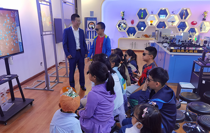 在参观过程中,小朋友们体验了红外立体电视、偏振光立体电影、裸眼3D电视、光学幻影、同自己握手等互动项目。在孟庆国老师、赵乃陈、焦琪两位研究生的详细的讲解下,小朋友们都大声感叹着科学世界的奇妙。VR体验更是让学生感受到了科学技术的奥妙,一张张专注科学的笑脸,体现了科技无穷的感染力。