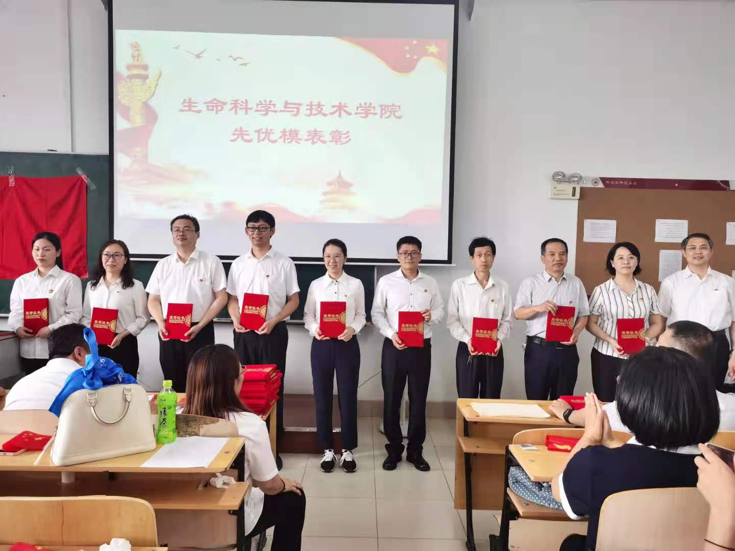 学院党领导分别为荣获学院“两优一先”的党员和基层党组织及荣获学院“先进集体”和“先进工作者”的教职工颁发荣誉证书。同时学院党委书记对受到表彰的先进单位和个人表示祝贺,希望他们要珍惜荣誉,再接再厉,为学院的发展建设再立新功。