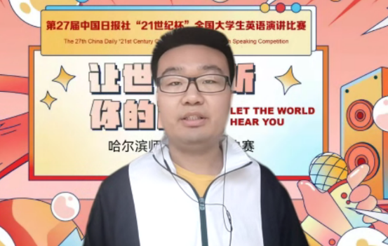 (杨胜男/文)5月7日,第二十七届可口可乐杯21世纪全国英语演讲比赛拼搏在线登录赛区决赛在线上举行,经过角逐,2019级英教九班李程好和2020级英教二班吕卿源脱颖而出,获得比赛特等奖,将代表学校参加黑龙江省决赛。