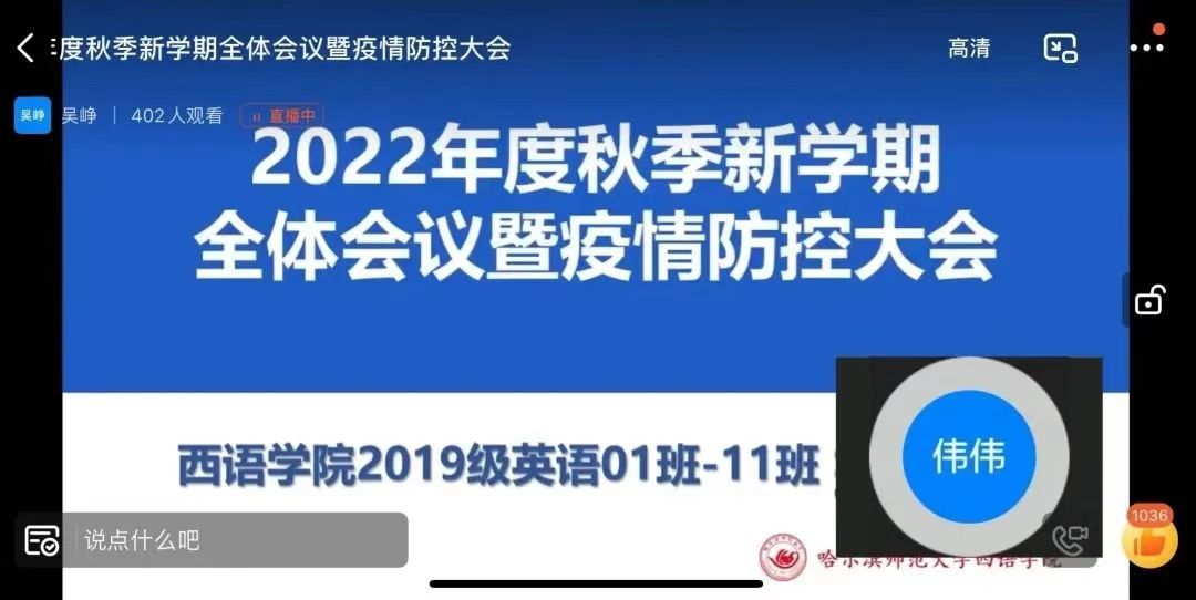 为落实学校疫情防控工作部署,谋划新学期学生管理工作,提升学院服务育人成效,8月21日,西语学院在线上召开2022年度秋季新学期学生安全教育暨疫情防控工作会议,学院各年级辅导员出席会议,全体学生参加会议。