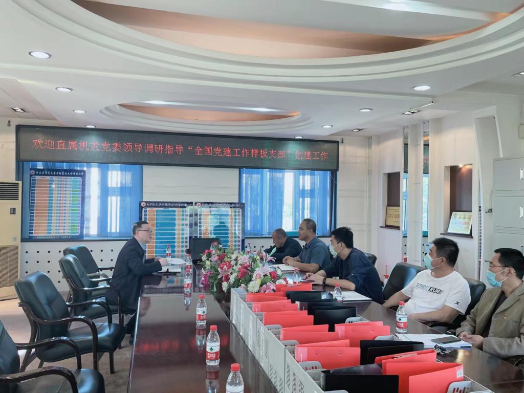(徐福水/文)9月13日下午,直属机关党委书记、党委组织部副部长李忠安到后勤管理处党支部调研指导“全国党建工作样板支部”创建工作。在后勤楼二楼会议室,李忠安听取了后勤管理处党支部书记、副处长徐福水关于“全国党建工作样板支部”创建工作进展情况、落实学校党委和直属机关党委工作部署情况的汇报。后勤管理处领导班子成员、党支部委员、各党小组组长参加汇报会,汇报会由徐福水主持。