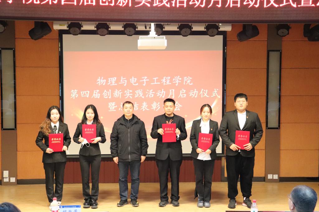 为进一步推动创新实践教育工作开展,激励学生踊跃参加创新实践活动,积极营造开放、创新的良好氛围,10月26日下午,物理与电子工程学院在科学会堂一楼报告厅举办第四届创新实践活动月启动仪式暨总结表彰大会。物理与电子工程学院党委书记邓铁男、院长李林、副院长付淑芳以及部分师生代表参加本次活动。本次活动由物理与电子工程学院党委副书记姜雪娥主持。