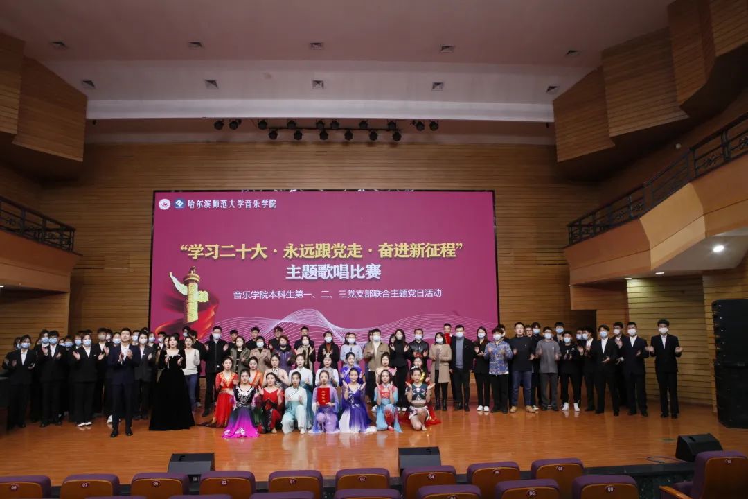 10月16日-22日,中国共产党第二十次全国代表大会在北京胜利召开。党的二十大是在全党全国各族人民迈上全面建设社会主义现代化国家新征程、向第二个百年奋斗目标进军的关键时刻召开的一次十分重要的大会,是一次高举旗帜、凝聚力量、团结奋进的大会。音乐学院党委积极贯彻落实中央、省委和学校党委决策部署,在大会召开之日,组织广大师生党员、入党积极分子、普通学生通过线下、线上形式收听、收看二十大开幕式盛况,聆听习近平总书记代表十九届中央委员会所作的报告。为进一步深刻学习领会党的二十大精神的核心要义,学院党委要求各党支部和广大师生党员要提高政治站位,统一思想认识,通过多种形式迅速掀起二十大学习热潮,要结合专业结合本职岗位用实际行动践行二十大精神。学院党委组织各党支部结合实际开展“学习二十大,永远跟党走,奋进新征程”主题党日活动。各党支部积极响应号召,高度重视,精心策划,积极组织,分别以理论宣讲、志愿服务、红色主题表演、经典诵读等形式开展主题党日活动。系列活动做到了支部全覆盖,所有党员全部参加,入党积极分子和普通学生也积极参与其中。