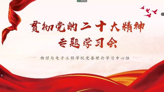 11月30日上午,物理与电子工程学院党委理论学习中心组利用线上腾讯会议举行贯彻党的二十大精神专题学习会。学院党委书记邓铁男主持会议并讲话,学院党委理论学习中心组全体成员参加学习。