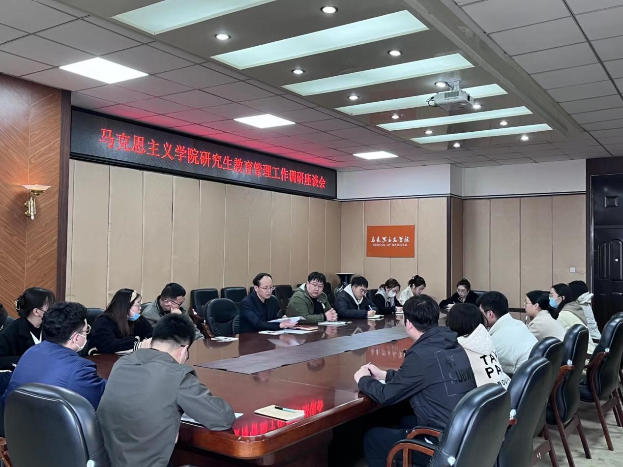 (翟屿潼/文)为加强研究生教育管理队伍建设,厚植研究生教育工作情怀,促进研究生教育管理工作能力提升,马克思主义学院于4月7日下午召开研究生教育管理工作调研座谈会,学院副院长刘爱军教授主持会议,学院教科办主任宋成吉、研究生兼职辅导员翟屿潼出席会议,研究生各年级各专业班长参加会议。