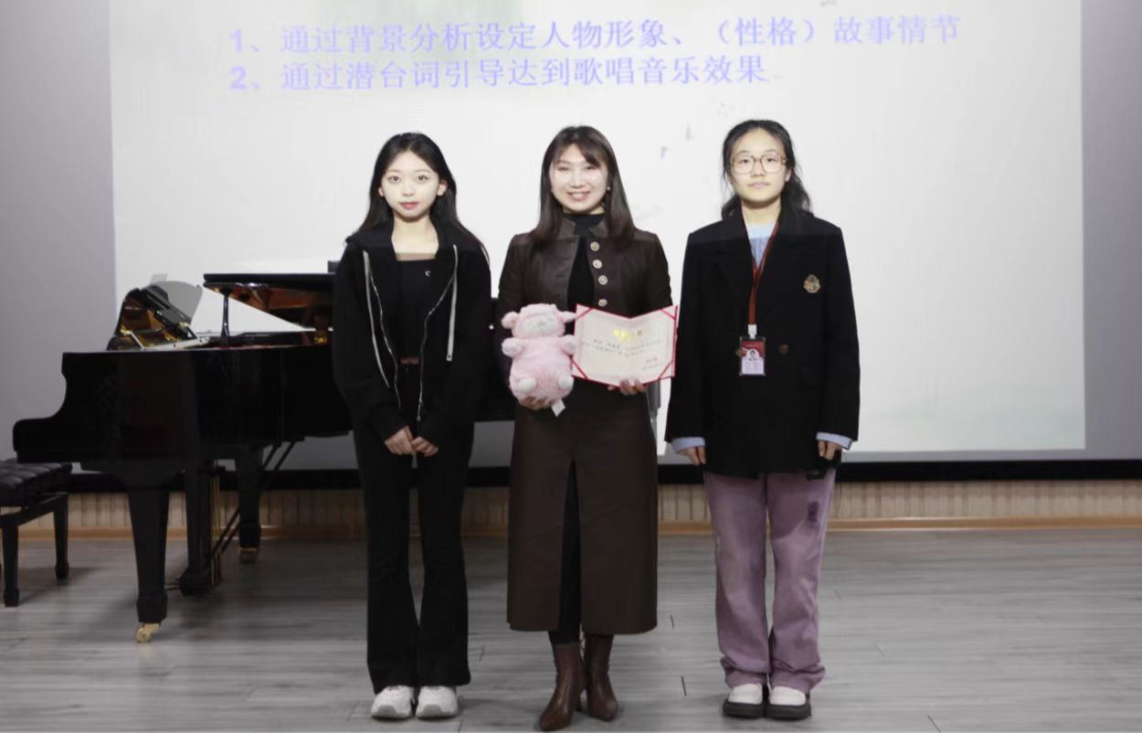 随后,何亚男邀请两位同学上台演唱,对两位同学的问题一一指正并取得显著效果。书山有路勤为径,学海无涯苦作舟。学生认识到要努力,要付出,要体会,才能从中取得收获。