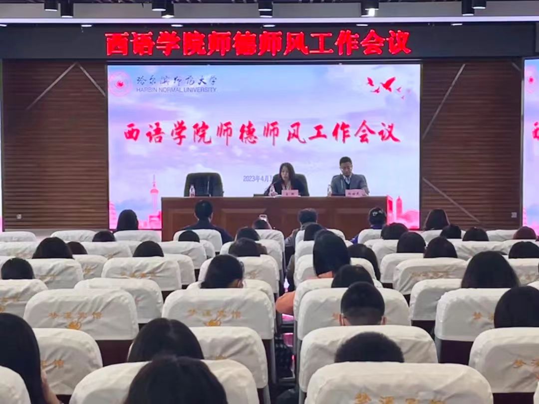 (刘可/文)为加强我院教师队伍建设,强化师德师风长效机制,不断提升教师专业素质和职业能力以适应学校发展需要,西语学院于2023年4月19日在梦溪宾馆二楼召开师德师风建设工作会议。西语学院党委书记王羽、院长顾世民及全体教职工参加会议。会议由王羽主持。