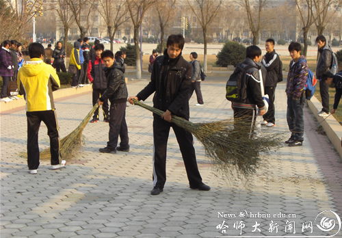 各学院志愿者在统一组织下,分别清扫了各学院的办公室、实验室、教室,并且对各学院楼前楼后的垃圾、杂草、杂物、白色垃圾等进行了清理。文学院和社会与历史学院还组织了200余名以学生党员为主体的志愿者服务队对综合实验楼前松树林里及周边的蒿草进行了集中清理。经过两个小时的劳动,校园内草坪上的杂草、杂物、残枝败叶及白色垃圾已被清理的干干净净,呈现在大家眼前的是美好整洁、清新亮丽的校园。