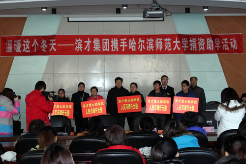 12月24日中午,黑龙江省滨才房地产开发集团有限公司“温暖这个冬天——滨才集团携手拼搏在线登录捐资助学仪式”在我校江北校区图书馆一楼报告厅举行。我校党委副书记王为正、滨才集团人力资源总监郭月杰、营销部项目经理李波和我校学生工作处负责人及受资助所在学院的师生代表参加了捐助仪式。