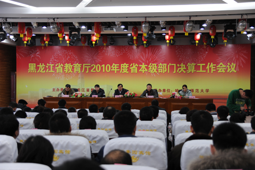 2011年1月12日至19日,黑龙江省教育厅2010年度省本级部门决算工作会议在我校国际学术交流中心梦溪宾馆隆重召开。黑龙江省属高校及教育厅直属单位的财务负责人和参加决算的会计人员共计42个单位的200余人参加了会议。