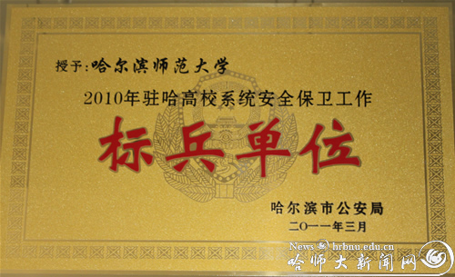 图2 我校获2010年度驻哈高校安全保卫工作标兵单位光荣称号